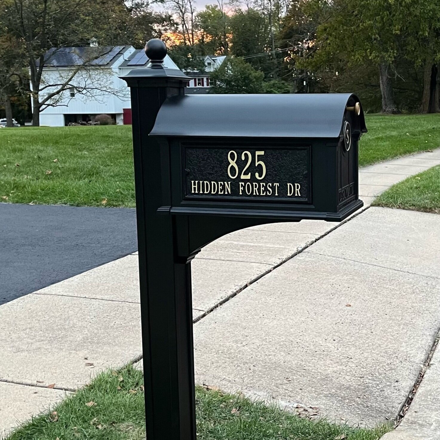 The solid cast aluminum Balmoral Large Capacity Mailbox with personalized monogram provides fashion and function with an elegant design. It is a beautiful way to display your family monogram while enhancing the curb appeal of your home.